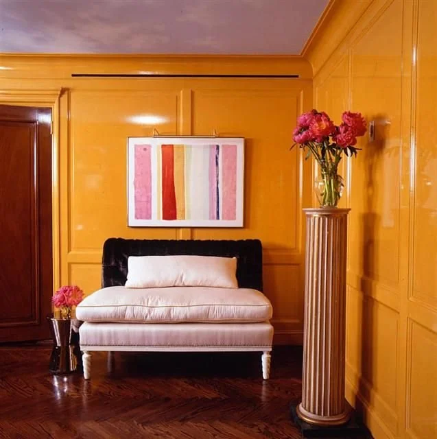 We’re seeing high-gloss paint finishes on walls and ceilings, plus statement furniture in lacquered color. Furniture isn’t just getting more colorful; it’s getting shinier too.